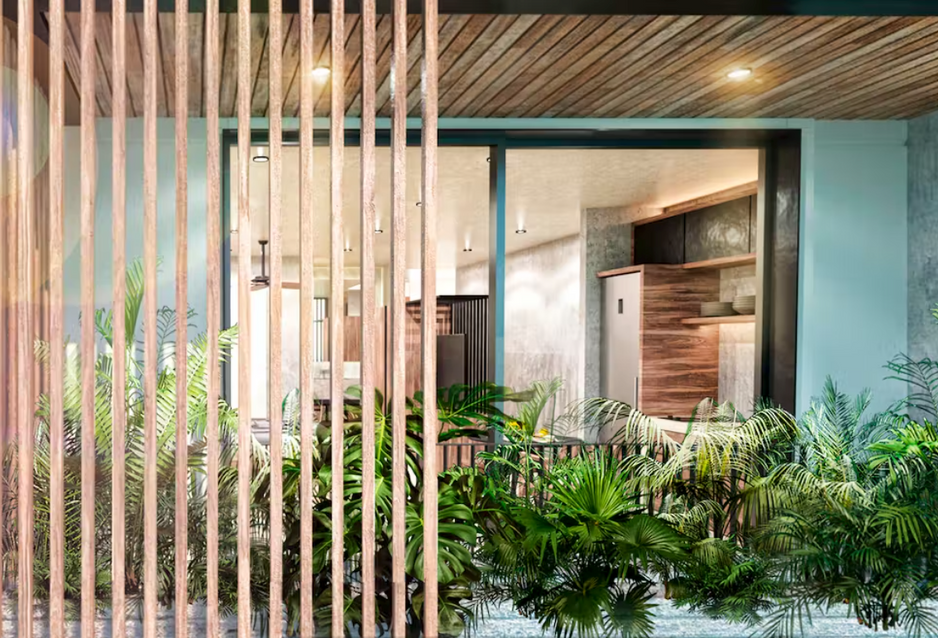 Each of the studio-type apartments has design details that generate harmony that you will only find at KÁAHAL. All our interiors follow the general line of the project, so you will be able to enjoy the natural accents of the façade and the range of natural materials of the concept.